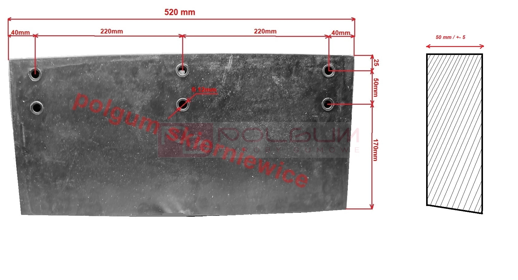 Lemiesz gumowy 520x250x45mm